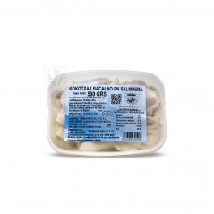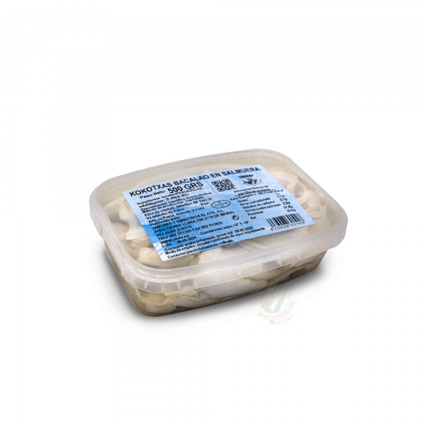 Parte inferior de la barbilla del bacalao. Gelatinosa y sin espinas. Ideales para preparar al pil pil. Necesario desalar 24 horas antes de su preparación en agua fría. Se venden por bandejas de 500 grs en salmuera.